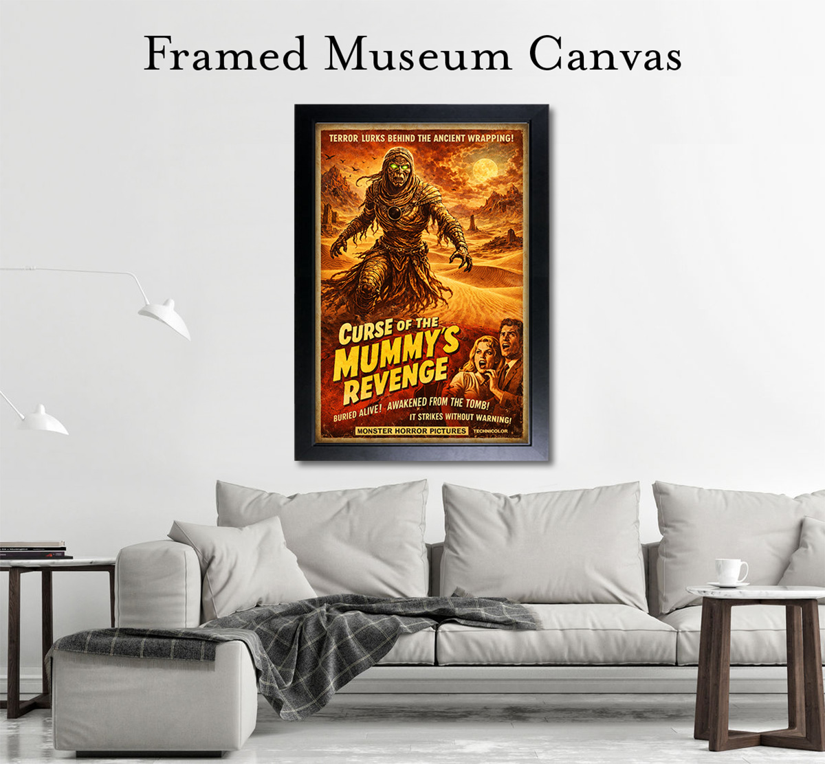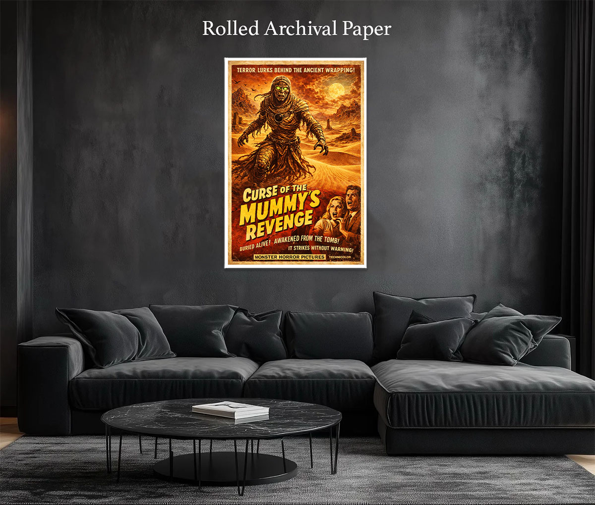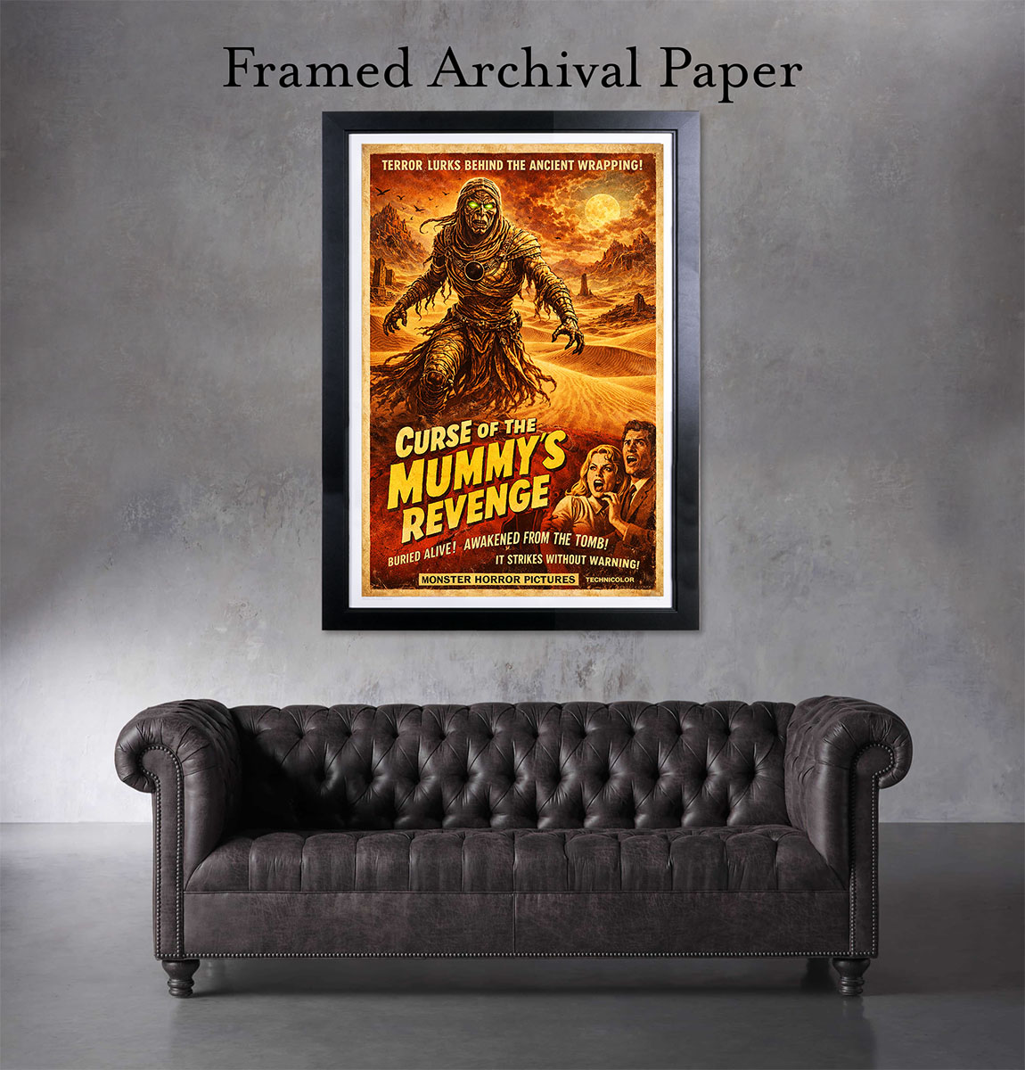 Curse of the Mummy Movie Poster – Perfect for Any Space – Add a bold statement to your home theater, office, bedroom, man cave, fantasy or movie art collection, or game room with this fantasy art décor that evokes true movie artwork nostalgia. Proudly Made in the USA – This high-quality art print is made in the USA, ensuring authenticity, durability, and premium craftsmanship.
