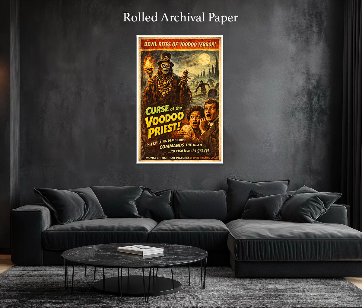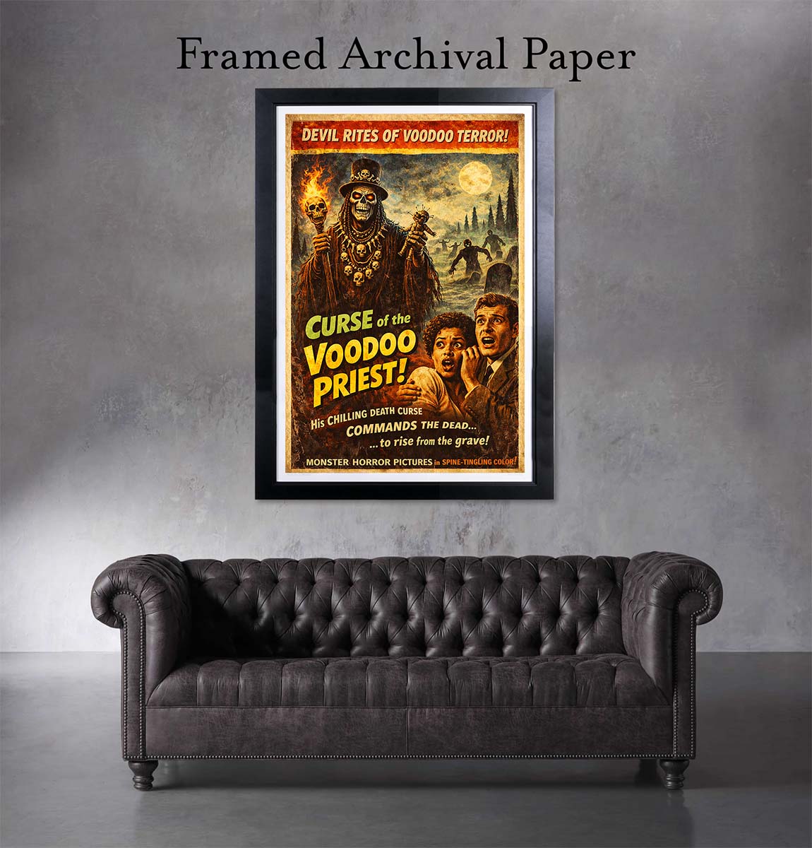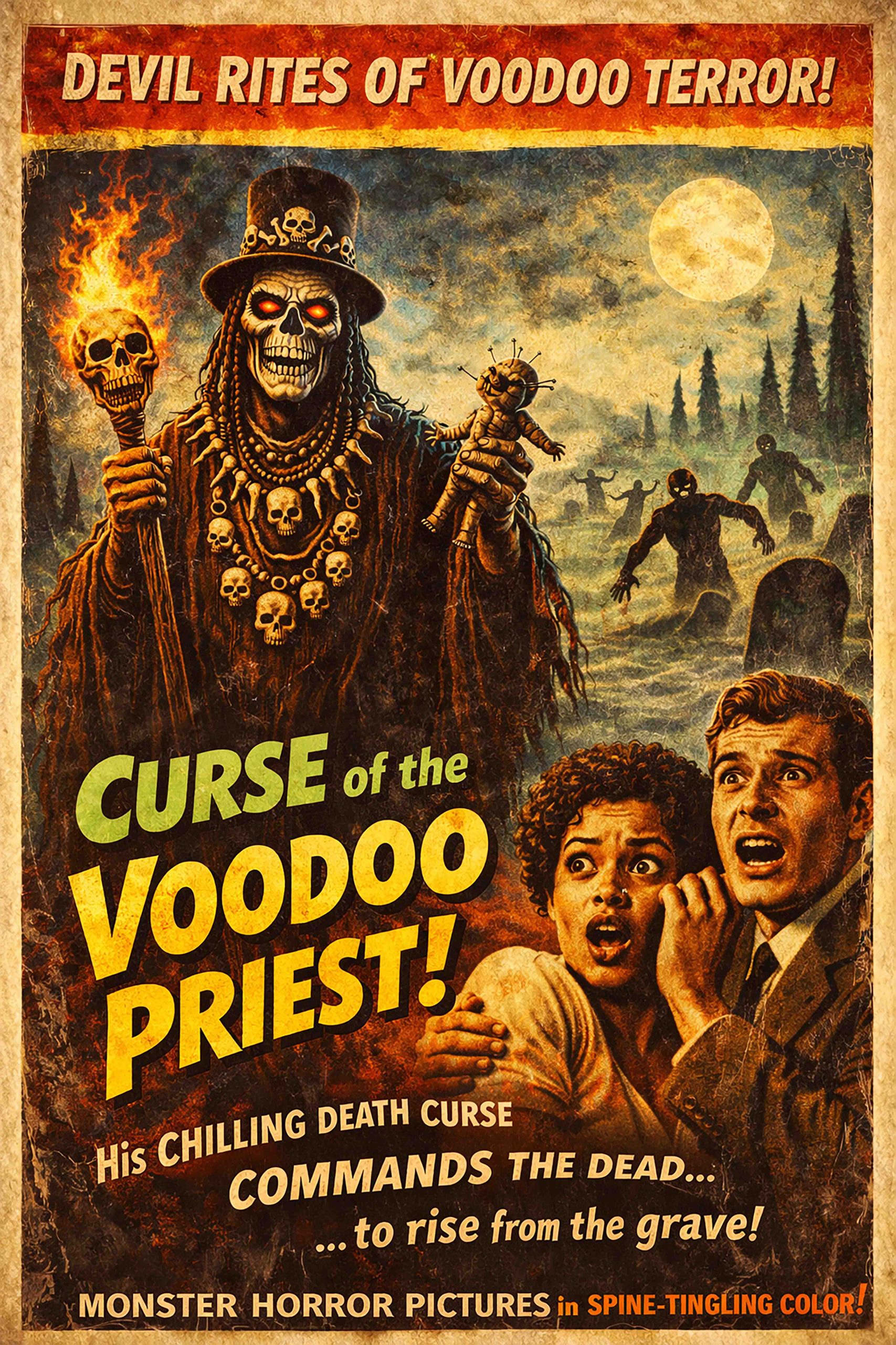 Voodoo Priest Movie Poster. Perfect for Any Space – Add a bold statement to your home theater, office, bedroom, man cave, fantasy or movie art collection, or game room with this fantasy art décor that evokes true movie artwork nostalgia. Proudly Made in the USA – This high-quality art print is made in the USA, ensuring authenticity, durability, and premium craftsmanship.